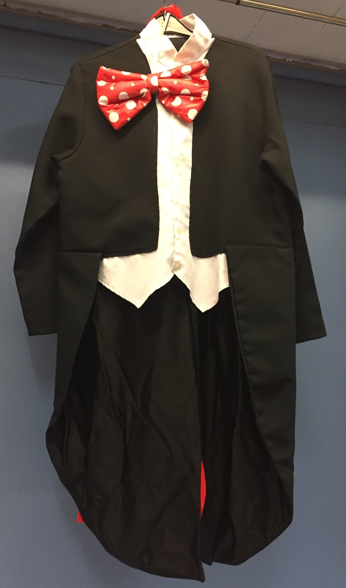 Costume includes Tailcoat with Waistcoat, Bow Tie, Pants & Ears Small Chest 37" Waist 26-29.5" Inside Leg 30"