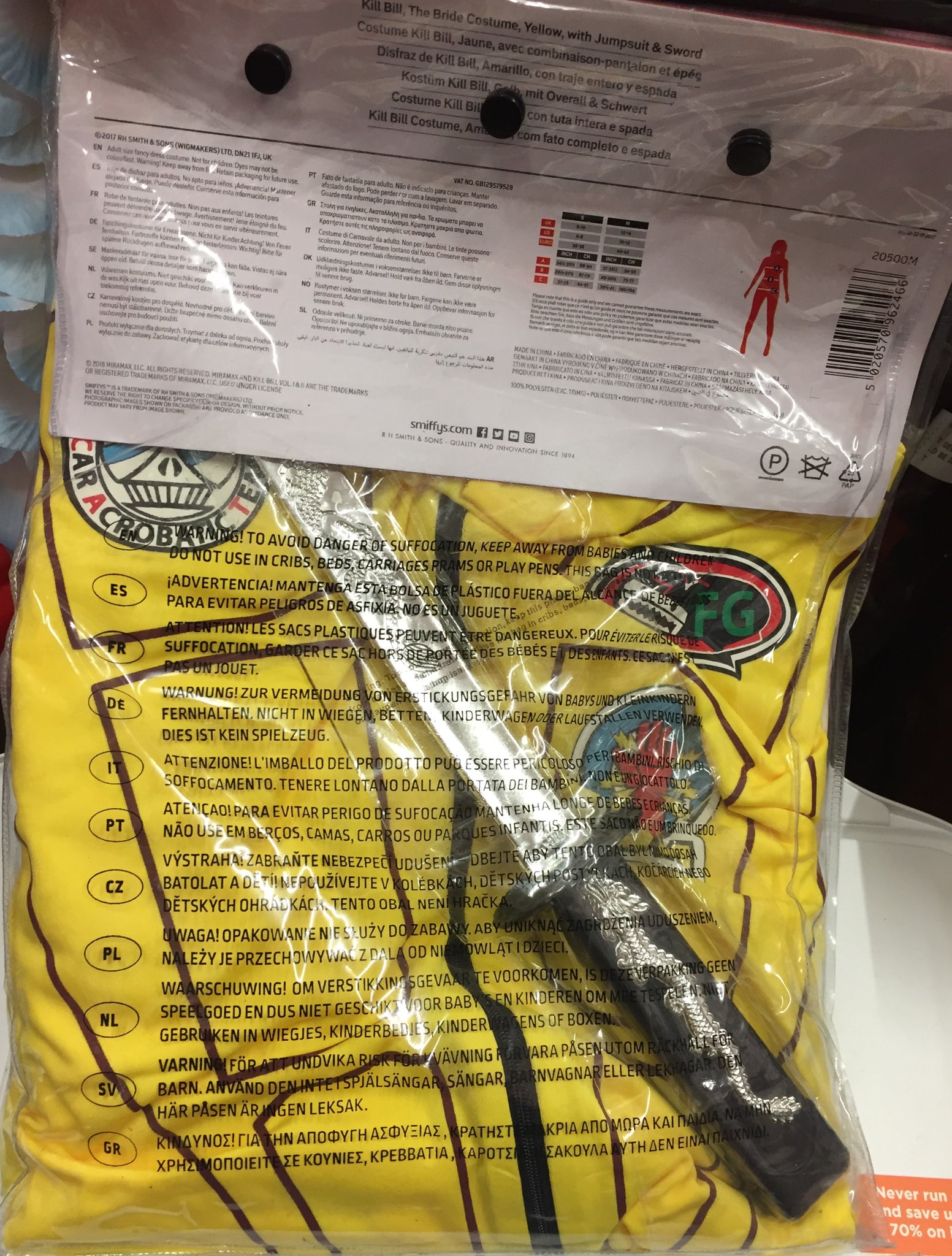 Smiffys Kill Bill Vol I & II - The Bride Costume - Costume Kill Bill - Contains Jumpsuit 7 Sword - Medium 12-14